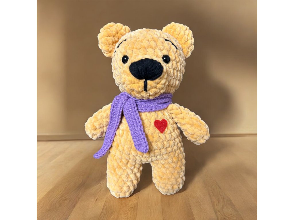 Medvídek je háčkovaný z příjemného materiálu a doplněný o srdíčko, které z něj dělá krásnou pozornost k narozeninám, Valentýnu nebo jen tak pro radost. Hodí se jako dekorace, talisman nebo milý doplněk k dárku.