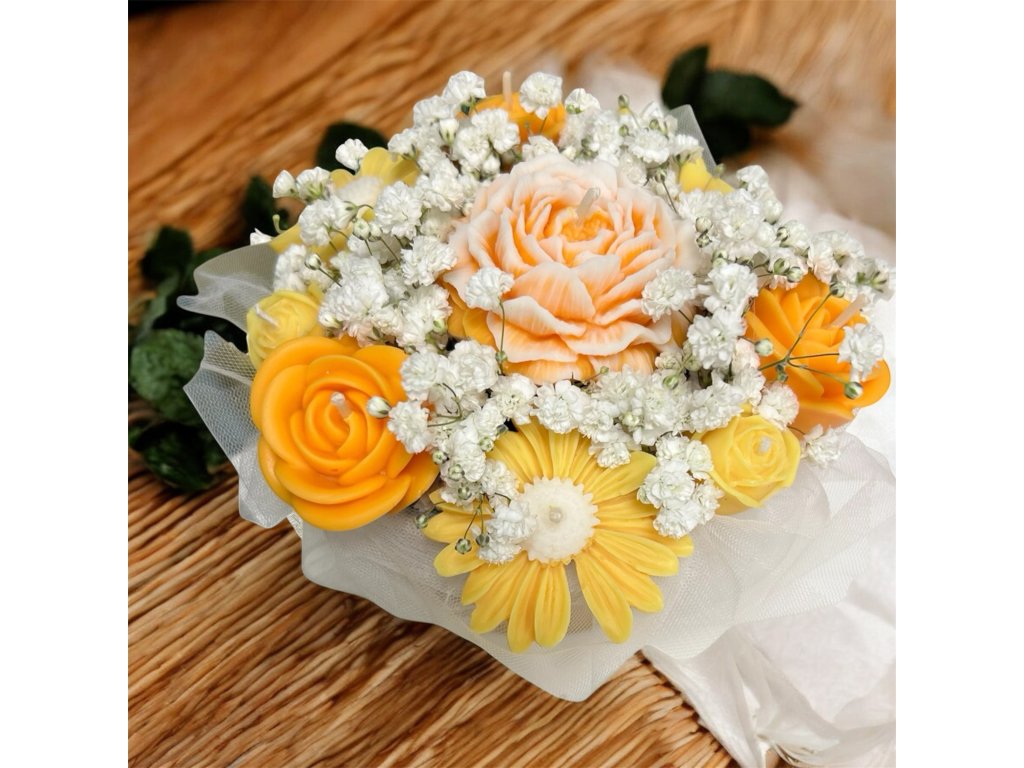 Vonná kytice ze svíček. Výška 11cm, šířka cca 13cm.