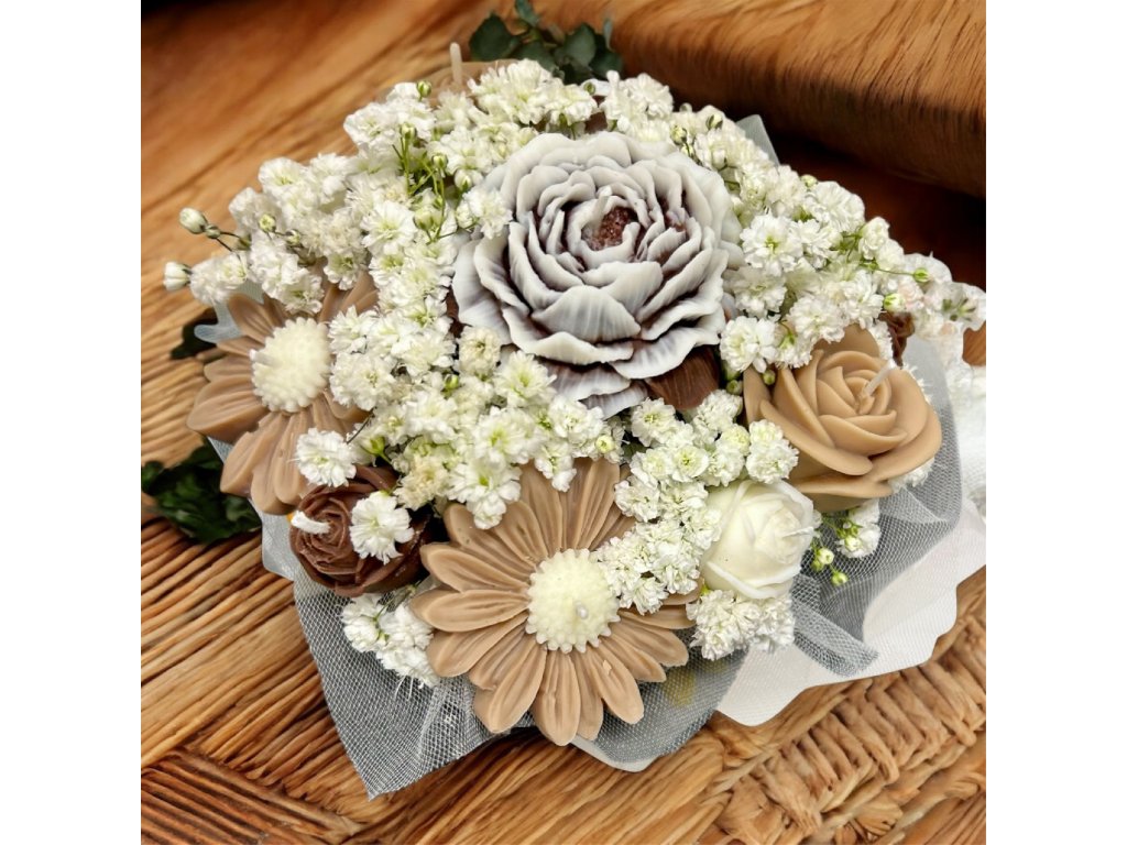 Vonná kytice - karamel/hnědá/bílá
