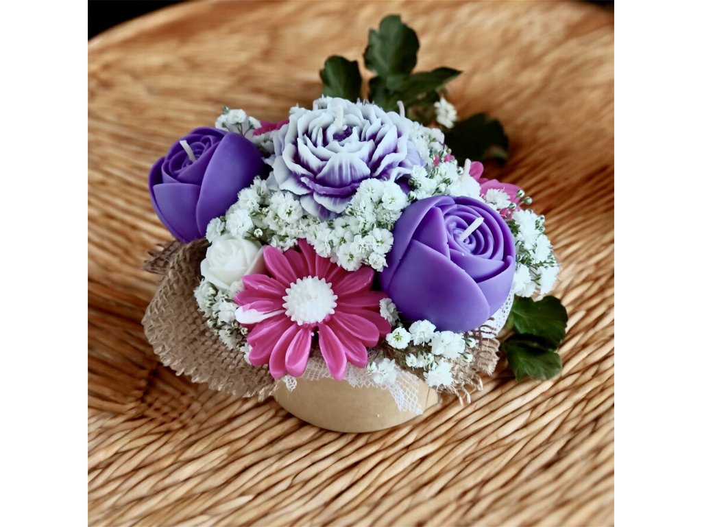 Vonná kytice ze svíček. Výška 11cm, šířka cca 13cm.