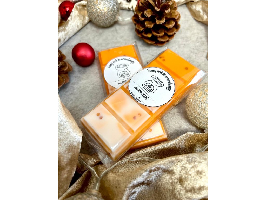 Vonný vosk Pomeranč ve tvaru praktické tabulky. Ideální do aromalampy pro rychlé a příjemné provonění prostoru. Hmotnost 40 g.